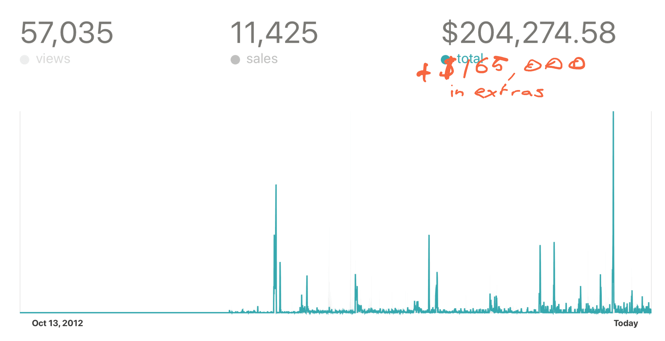 Okay you saw the title – $369,000 in 5 years – and the Gumroad sales screenshot – $200,000 – and then I said 22% margin before tax and without paying myself. What the fuck gives??