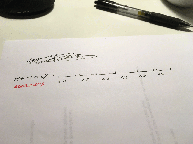 We have memory with 7 addresses - A1 through A7. For simplicity, we’re giving our variables the same names.