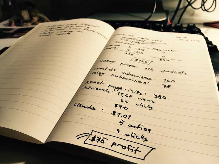 Every week, I would write down some numbers, take stock of how I pushed my side-hustle forward, and brainstorm some ideas on what to do next. Here’s what that first page said: