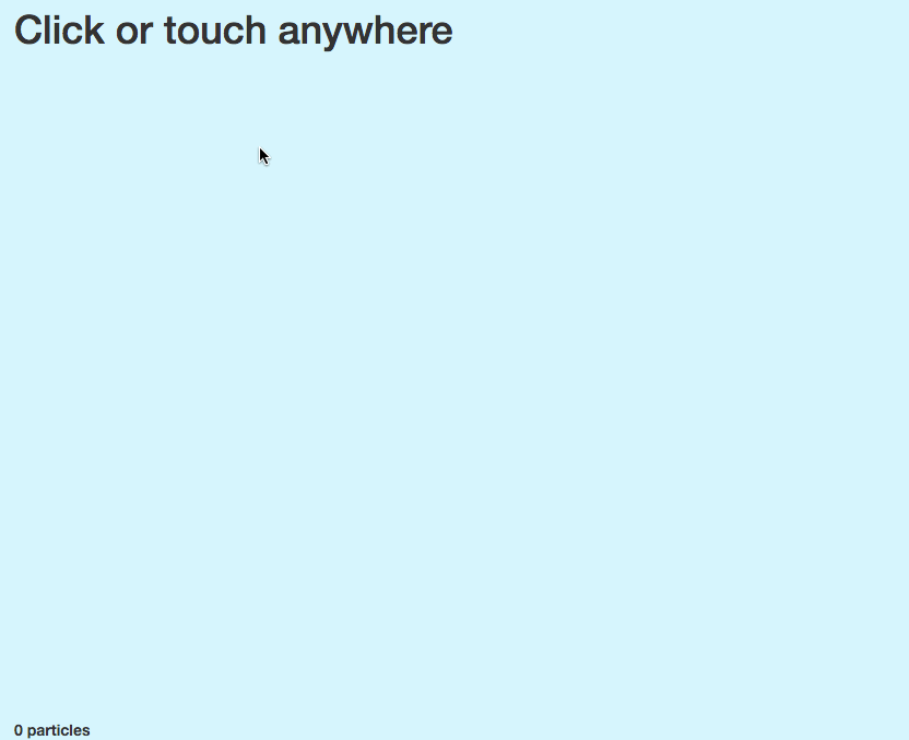 Oh, and we call startTicker() when a user clicks on our scene. No reason to have the clock running before any particles exist.
