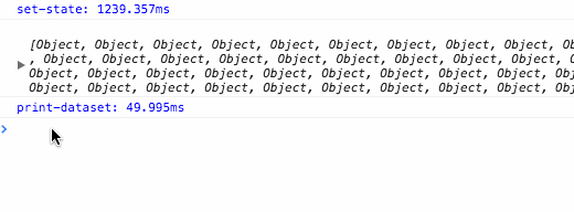 It’s so annoying because everything else is so damn fast! Want to .map your dataset? No biggie, 10ms max. Want to .filter? 10ms. Want to filter and map and flush React updates to DOM and do all the things? You won’t even notice it does anything.
