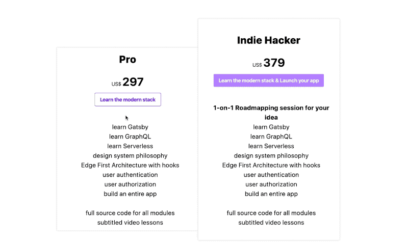 This renders a button as a link tag, links to Gumroad, and enables the Gumroad popover. Users can purchase without leaving the page and if that doesn't work (no JS, weird browser, etc), they go to Gumroad's checkout page.