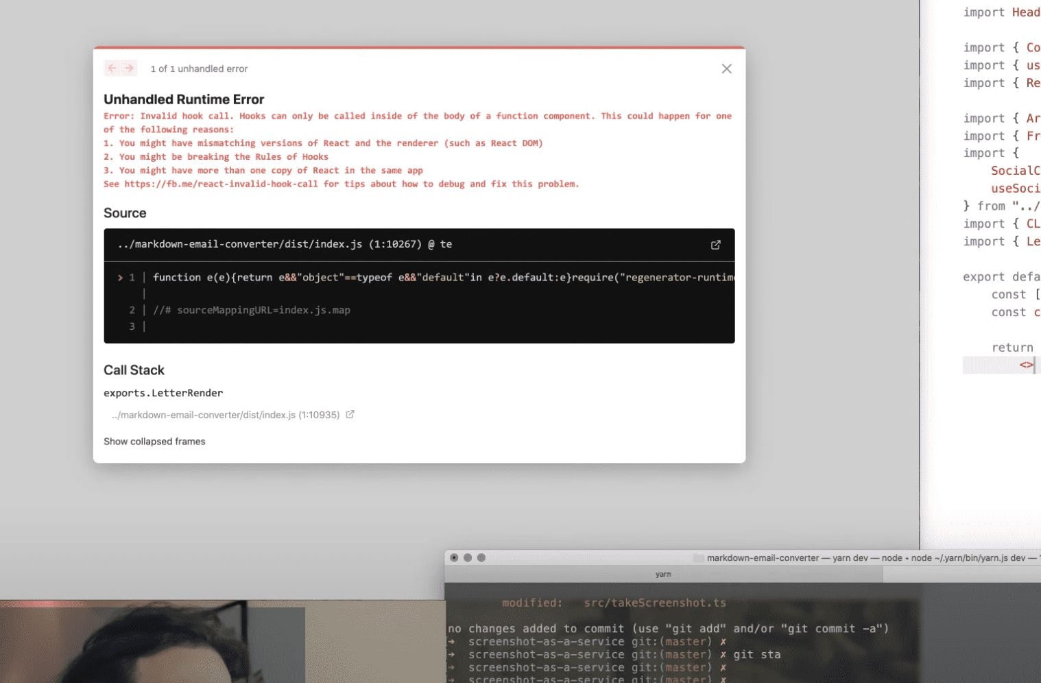 Much of our frustration budget was spent on this cryptic error. "Naughty naughty, calling hooks in a class component"