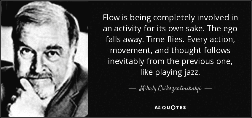 Mihaly Csikszentmihalyi invented/discovered/defined flow. I wrote about it lots in Why Programmers Work at Night back when I thought flow was the only way to code.