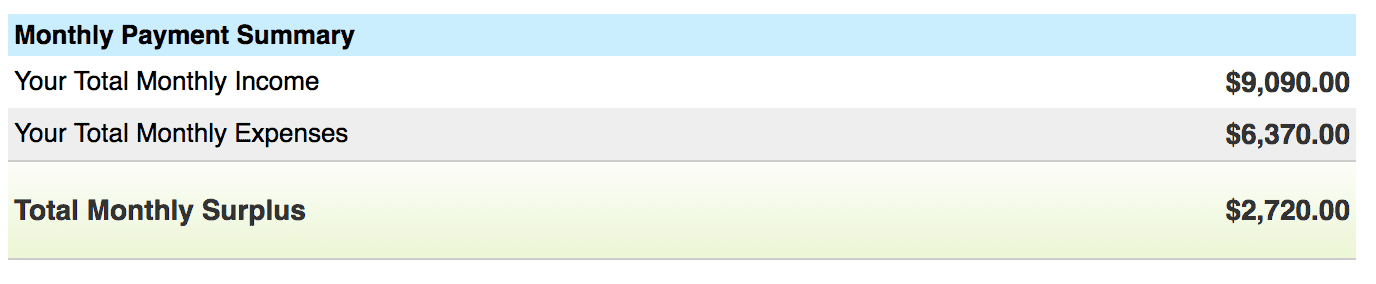 So I used their helpful calculator. You put in how much you make, how much you think you spend, and they tell you how much you can afford to pay.