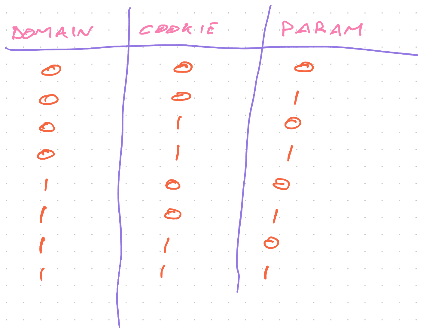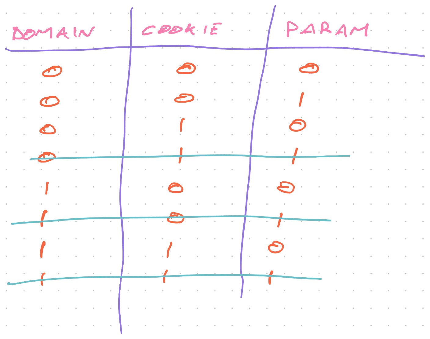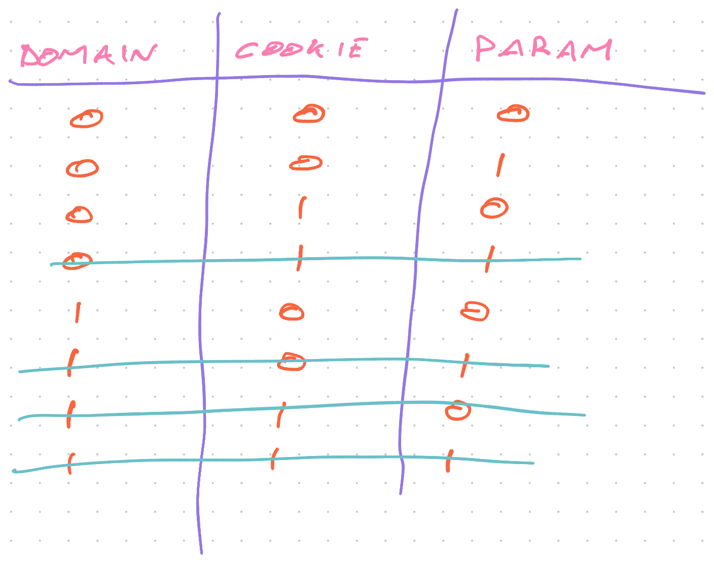 We can discard some because of precedence rules. ?env= param always wins, so you can drop all but one row where it's set.