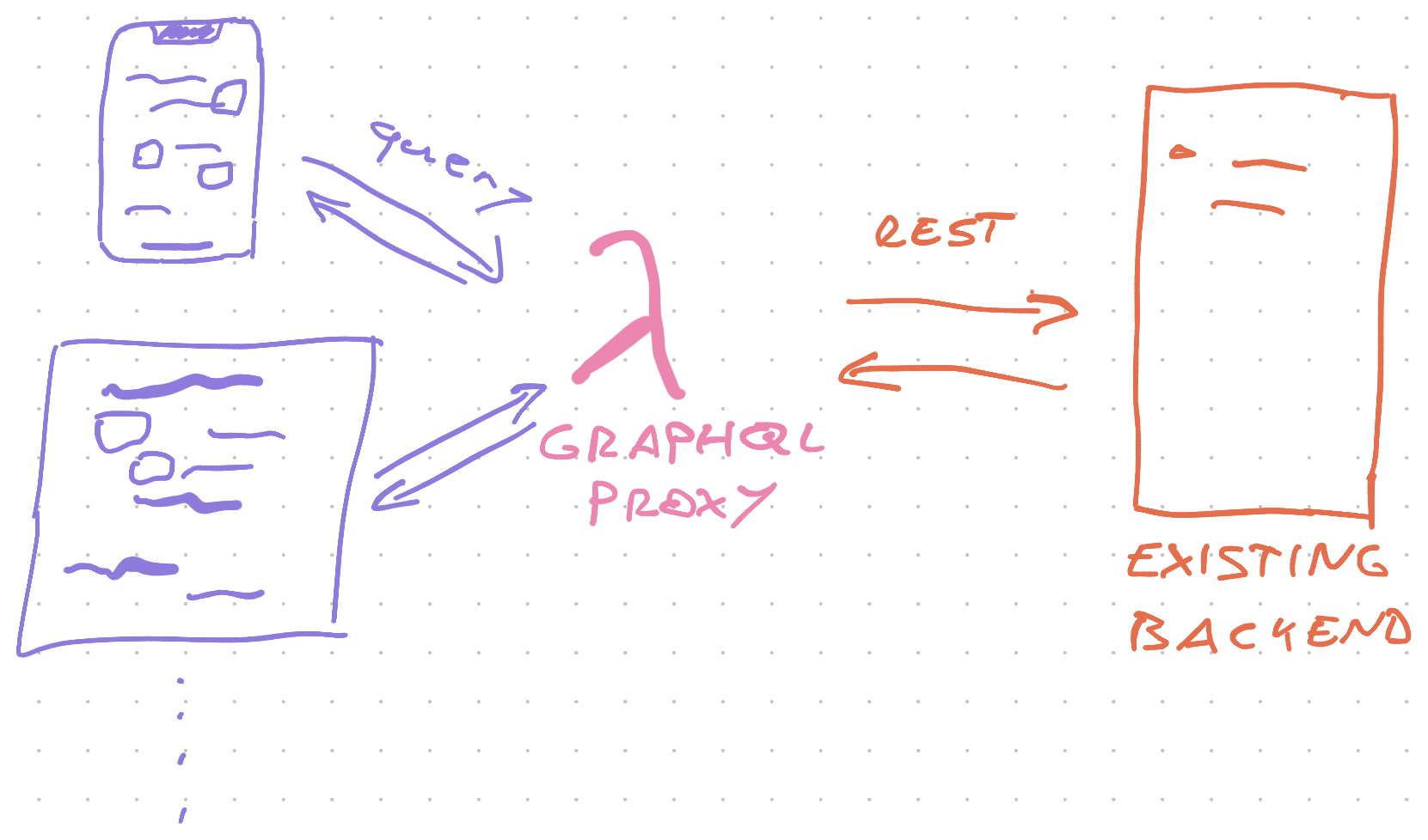 - GraphQL proxy gets query and maps it to the