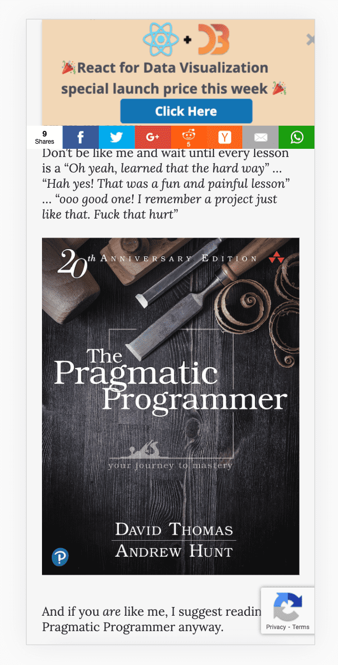 We soon added a blog at reactfordataviz.com/articles. Didn't want to build it myself, hired help.