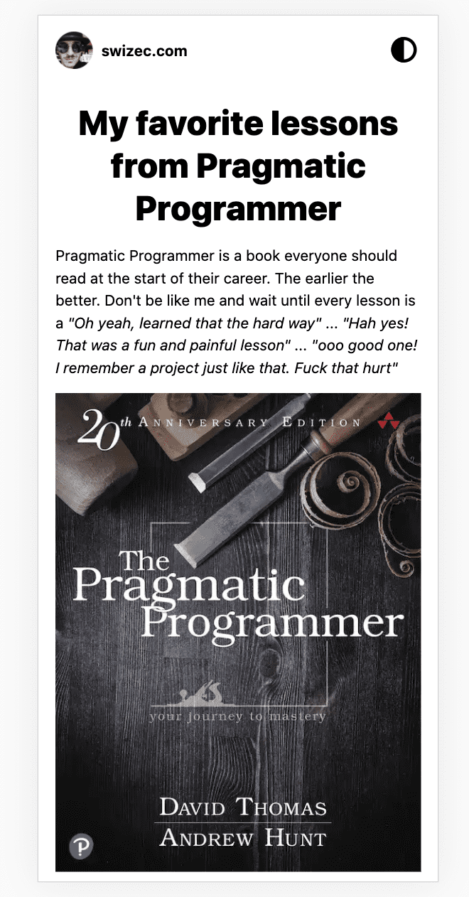 That's because I can publish the same Markdown source file to both my newsletter and swizec.com ✌️