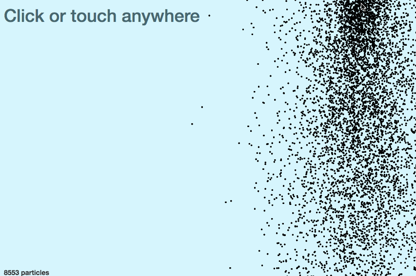 So smooth! I had to increase the number of particles generated on every animation tick up to 2000 just to see anything interesting going on. Insane.