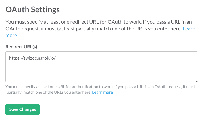 Oh ,and that callback parameter Grant asks for? That is not the same as the Redirect URL that Slack asks for. Set them to the same value, and you’re going for an endless redirect ride. Learned that the hard way. ☺️