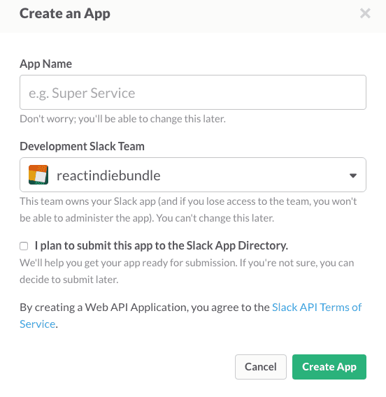 First, you have to set up a Slack app. Not an ad-hoc custom integration like you’ve had until now. Oh no, you need a real app. It takes a few clicks on this screen: