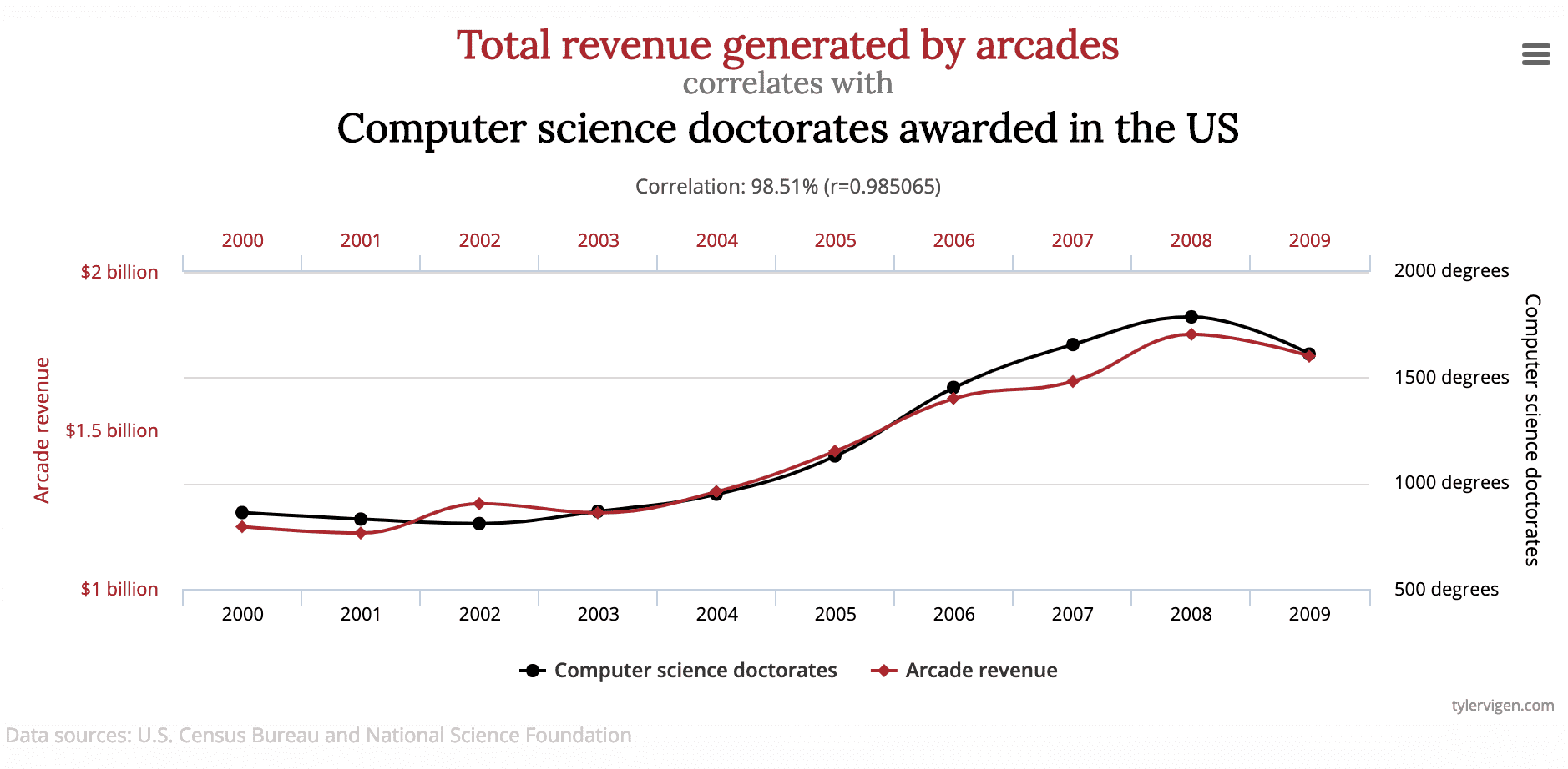 The more money arcades make, the more people get a doctorate in computer science. Okay maybe those are a little connected. 😅