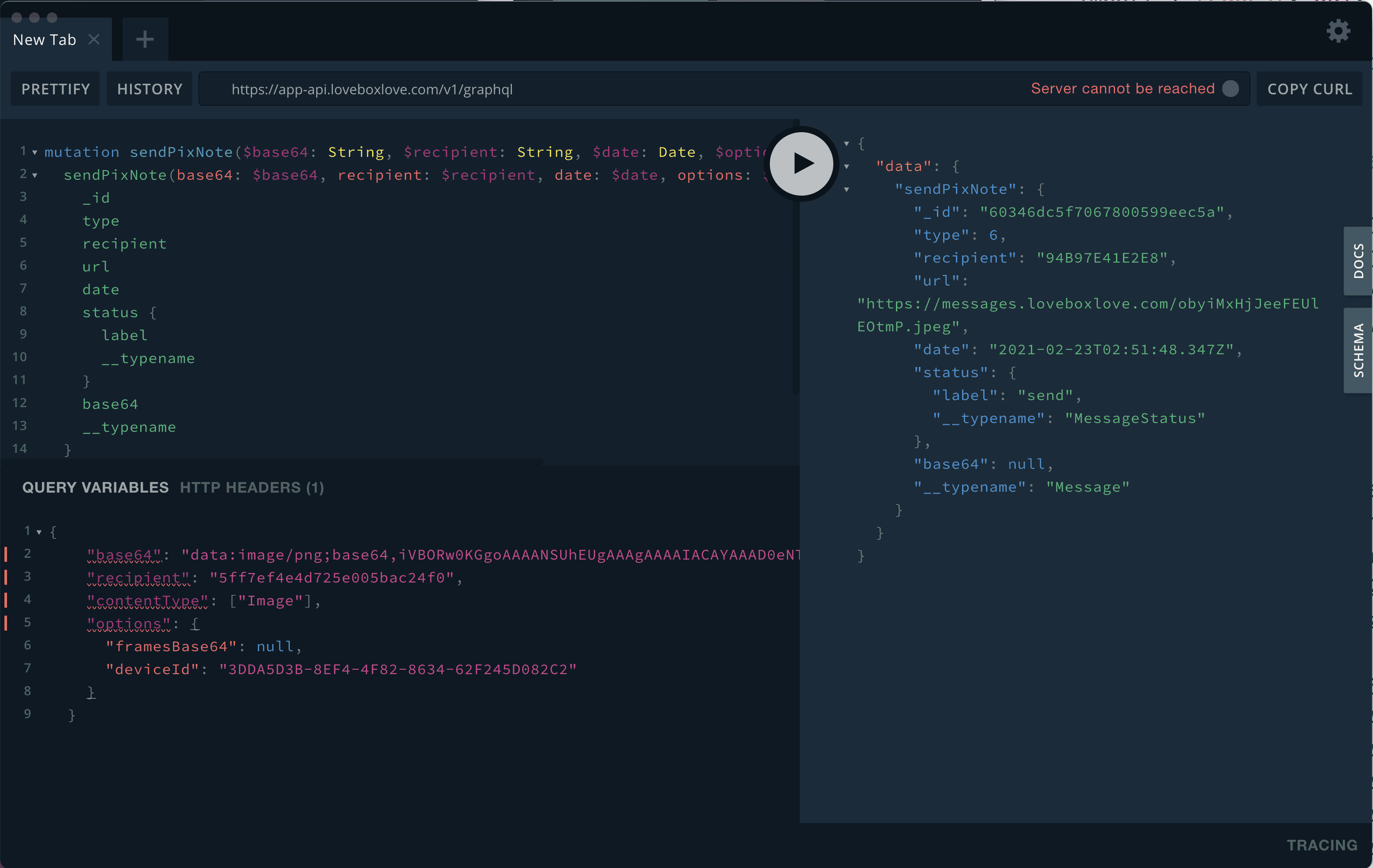 mutation sendPixNote($base64: String$recipient: String$date: Date$options: JSON$contentType: [String]) {sendPixNote(base64: $base64recipient: $recipientdate: $dateoptions: $optionscontentType: $contentType) {_idtyperecipienturldatestatus {label__typename}base64__typename}}