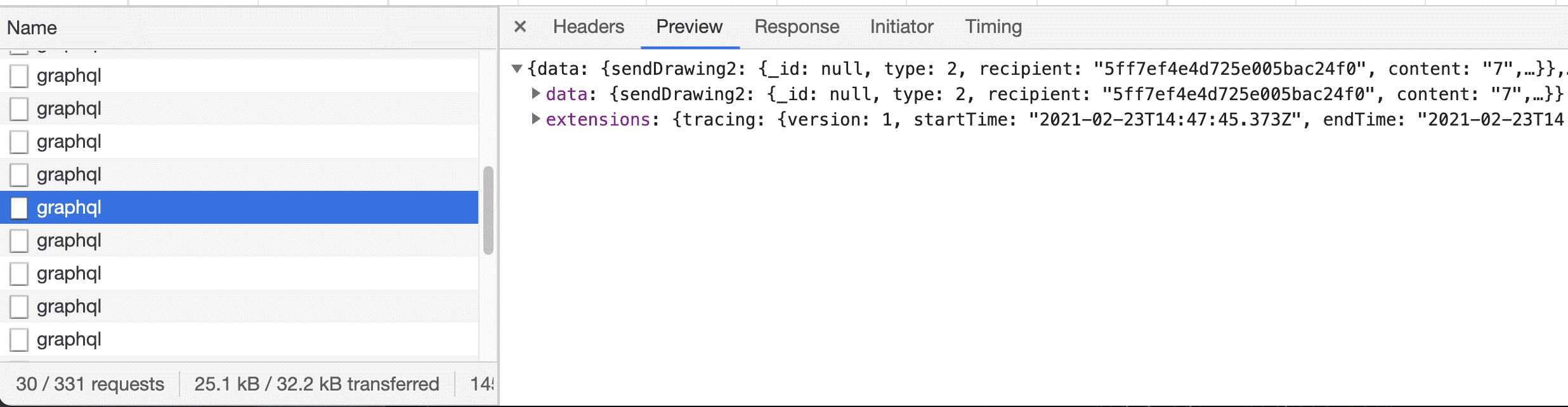 We dug through the trace and found the GraphQL request that sends a note – sendPixNote2.