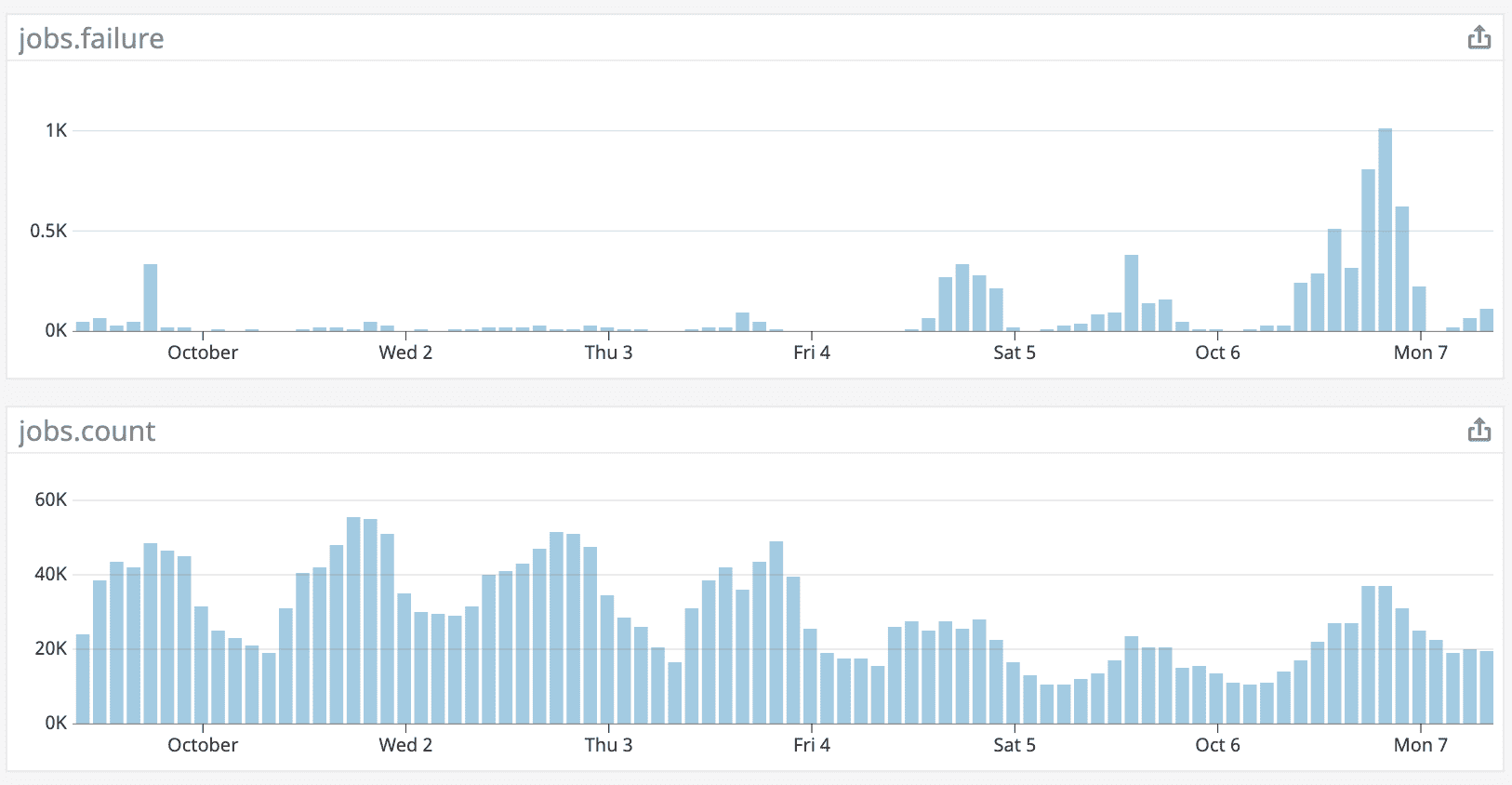 We like to keep jobs.failure at a cool 0.1% or so. Now it shot up to almost 3%. 30 times worse 😬