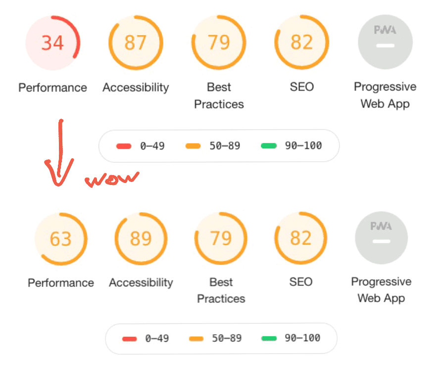 You can 2x your Lighthouse performance score just by changing how you embed 8 gifs on a gigantic 6000 word page with 130 requests and 16megs of data.