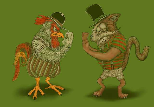 Interestingly, felids do not appear to have a submissive behaviour to avert physical injury and even a submissive cat will roll on its back and confront the attacker with claws on all paws. If the attacker isn't careful, disembowelment is a distinct possibility.