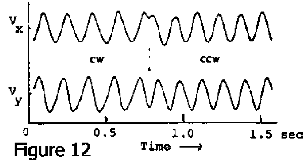 The graph shows two velocity components of such a spinning cell and as you can see Vx and Vy are 90° out of phase. This means the cell is going in a circle.