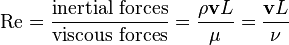 In the formula, 'ρ' is the fluid's density, 'v' is the object's velocity, 'L' its significant dimension, and 'μ' the fluid's kinematic viscosity.