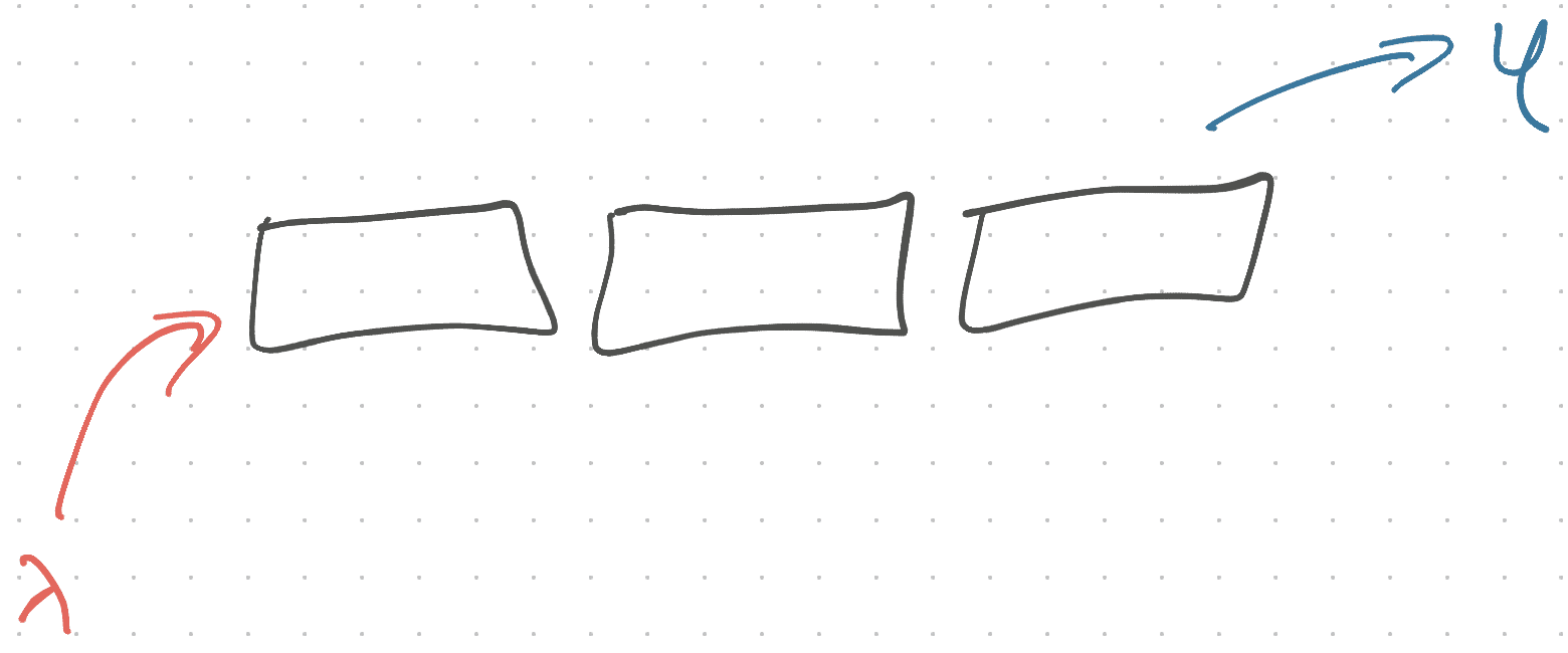 Queue performance depends on λ – arrival rate – and μ – processing speed. Arrival rate fills up your queue, processing drains it.