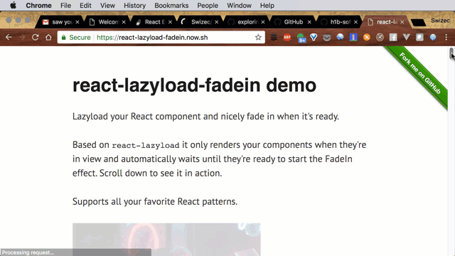I open sourced my react-lazyload-fadein component this weekend. 75 stars already. I guess people like it 💪