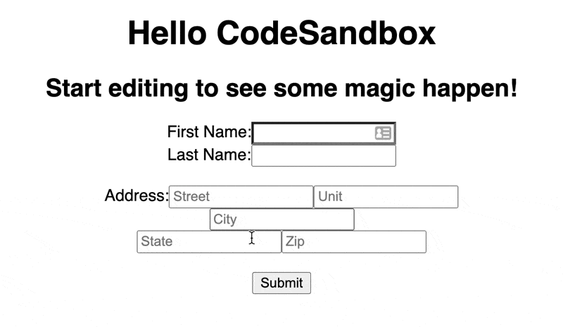 Here's the example above built with react-hook-form: